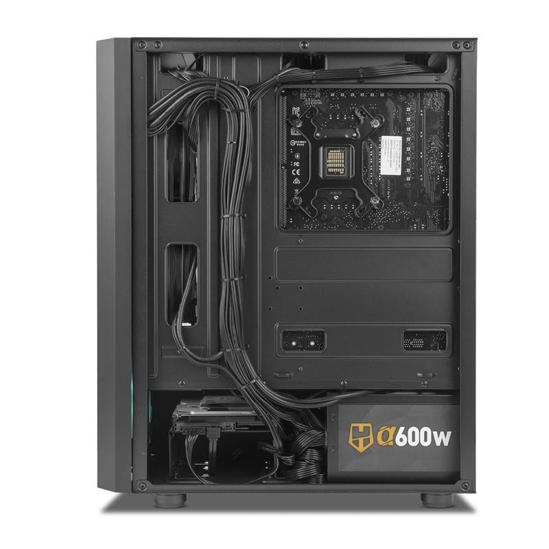 Semitorre con diseño gaming Nox Hummer Frost con tira frontal LED ARGB Rainbow, ventana lateral de cristal templado, capacidad hasta 6 ventiladores de 120 mm, principales puertos a mano y compatible con gráficas de gran tamaño.
