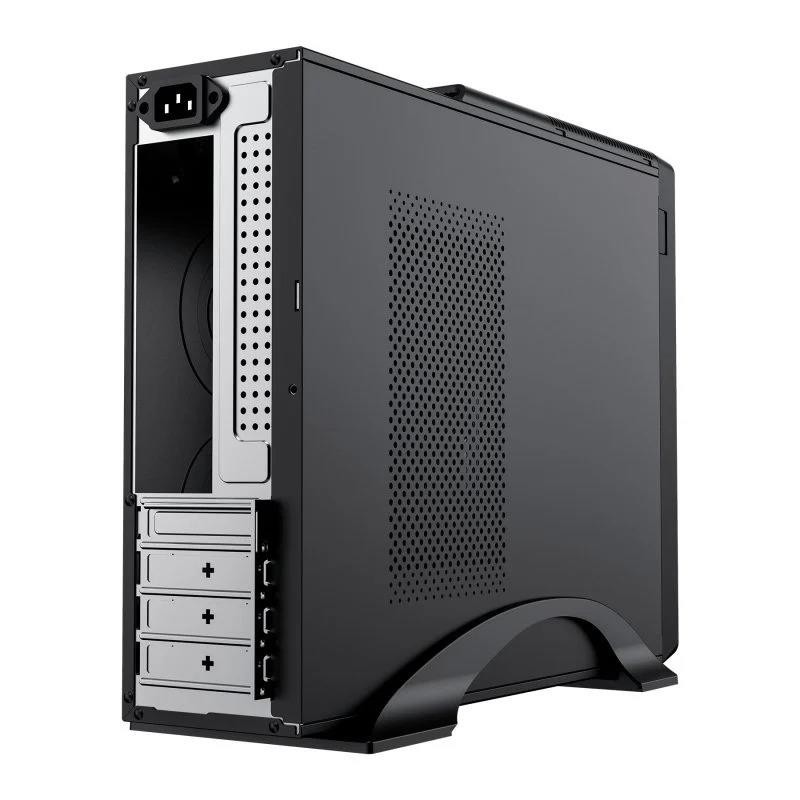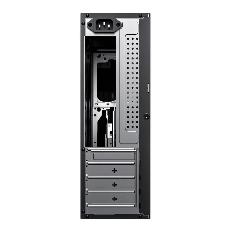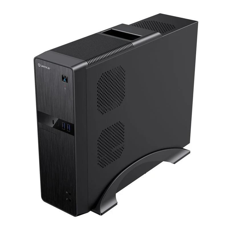 El frontal de la caja UK2011 Slim MATX tiene un acabado con efecto aluminio, lo que le da un aspecto elegante y moderno. Además de su atractivo diseño, la caja cuenta con dos conectores USB 3.0 y dos conectores Type C (USB 2.0), lo que la hace perfecta tanto para entornos profesionales como personales.