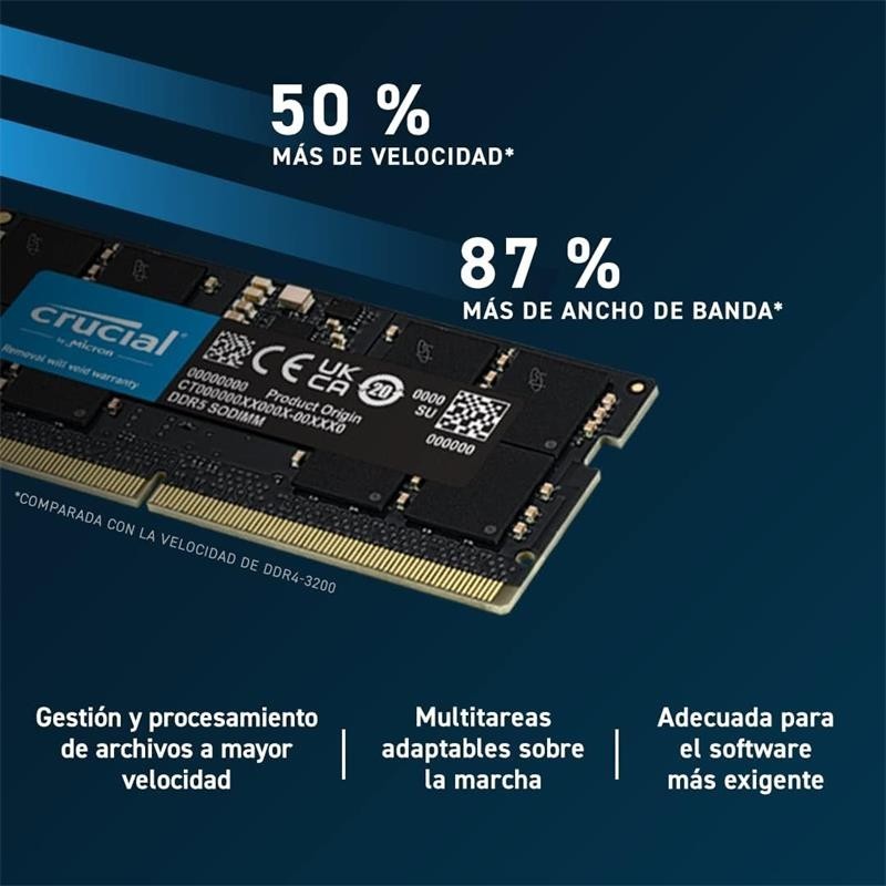 Comprar MEMORIA SODIMM 16GB CRUCIAL DDR5 4800MHZ en La Palma, Canarias al mejor precio de forma fácil, rápido y con garantía de calidad.