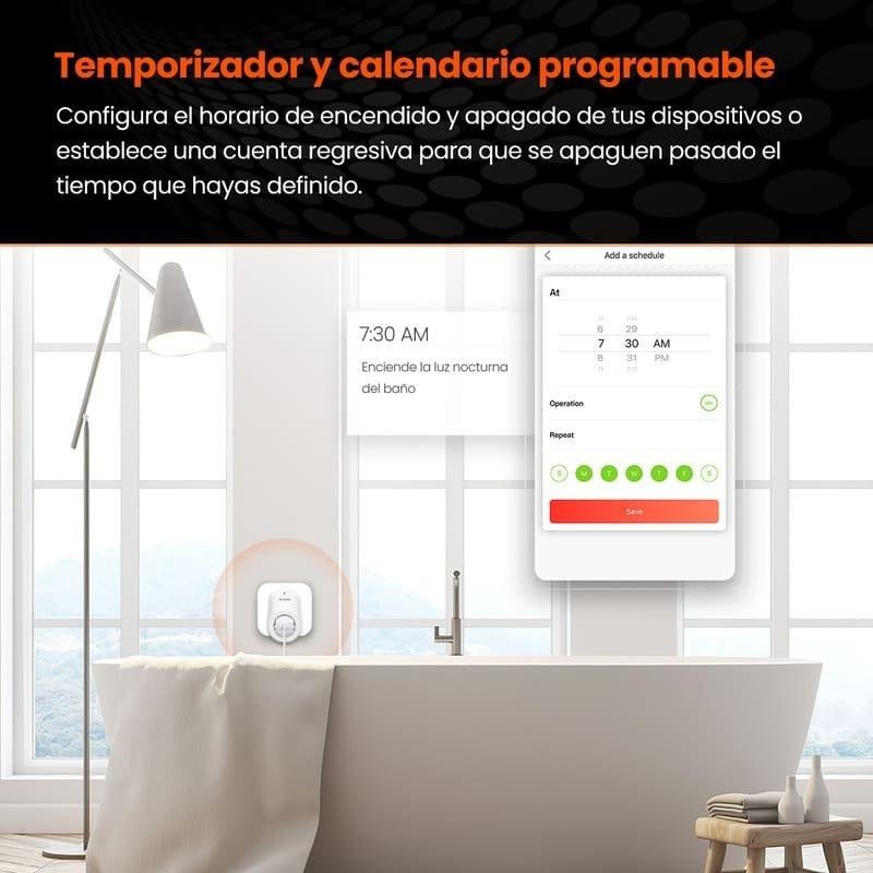 • Control Inteligente para la Vivienda, Fácil y Eficiente. Mantenga el control, creando un plan de energía programado, de modo que, si apaga la luz al amanecer, enciende la cafetera mientras se ducha o enciende las luces al anochecer, tu estableces las reglas.