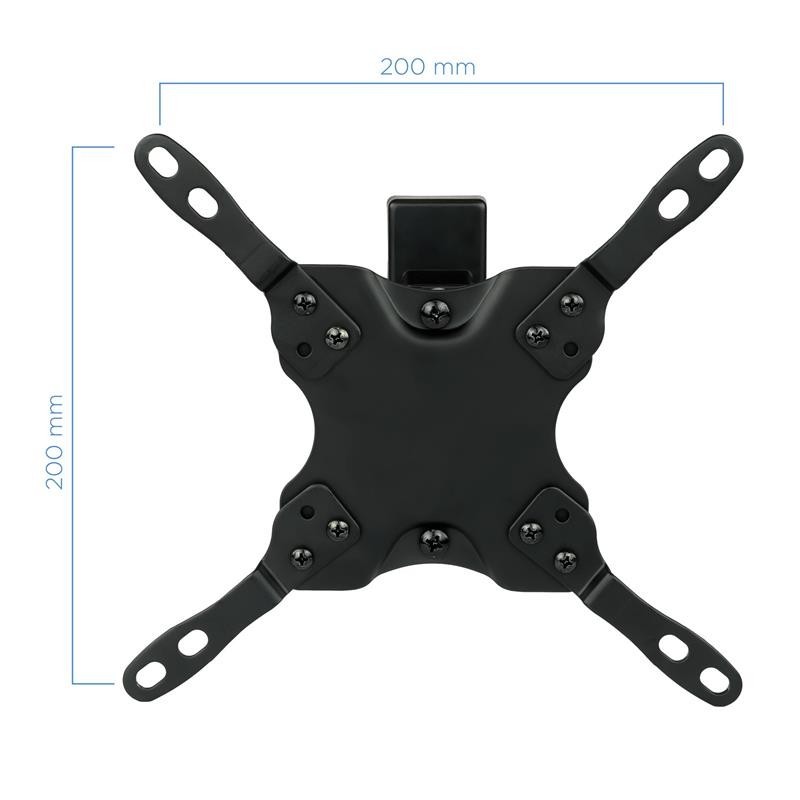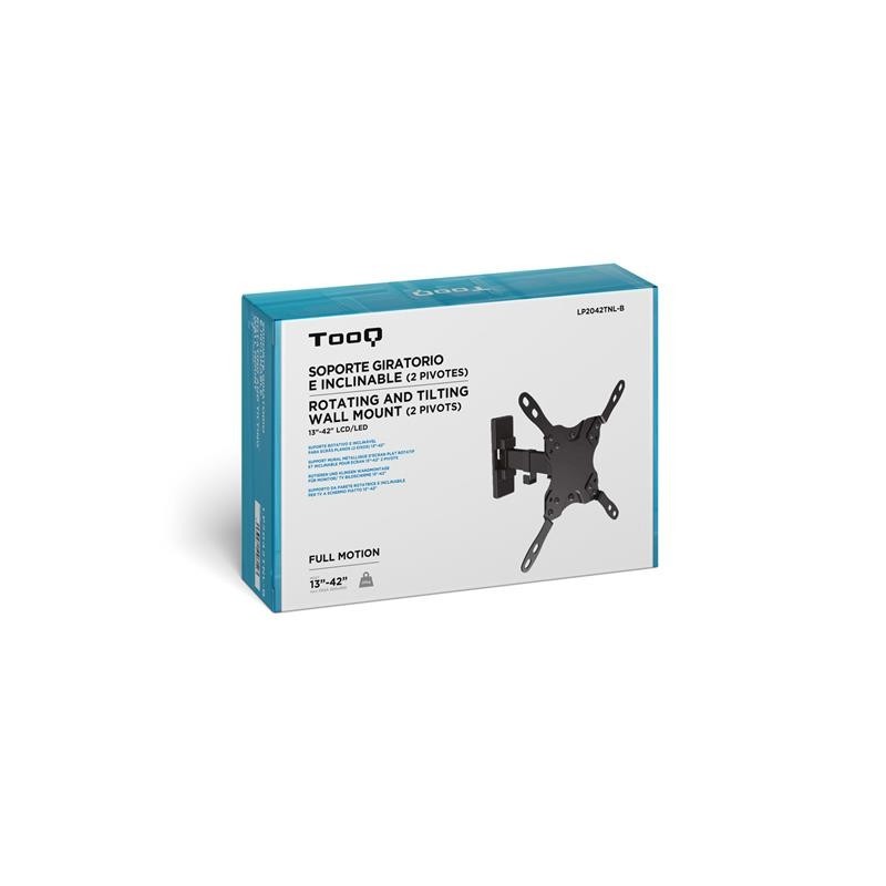 Soporte vertical de fijación en pared para pantallas planas de 13"" a 42"" y hasta un máximo de 20kg de peso. Permite configurar la inclinación de -12º ~ +5º sobre el plano vertical y con un ángulo de giro de 180º sobre el plano horizontal. Compatible con los formatos de fijación de pantalla VESA 75x75, 100x100, 200x100 Y 200x200 mm. Incluye manual de instrucciones y kit de montaje para que en unos minutos pueda disfrutar de su TV o monitor en el lugar elegido. 10 años de garantía y fabricado en metal de alta resistencia. Siempre con la calidad de los productos Tooq y al mejor precio.