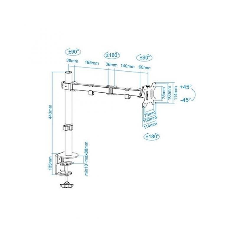 - Extensión máxima del brazo: 459 mm