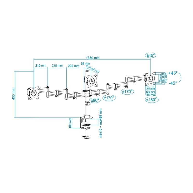 - Soporte de mesa orientable para 3 pantallas (monitor / plasma / LCD / LED) de 13" a 27" (depende de la instalación y del espacio disponible)