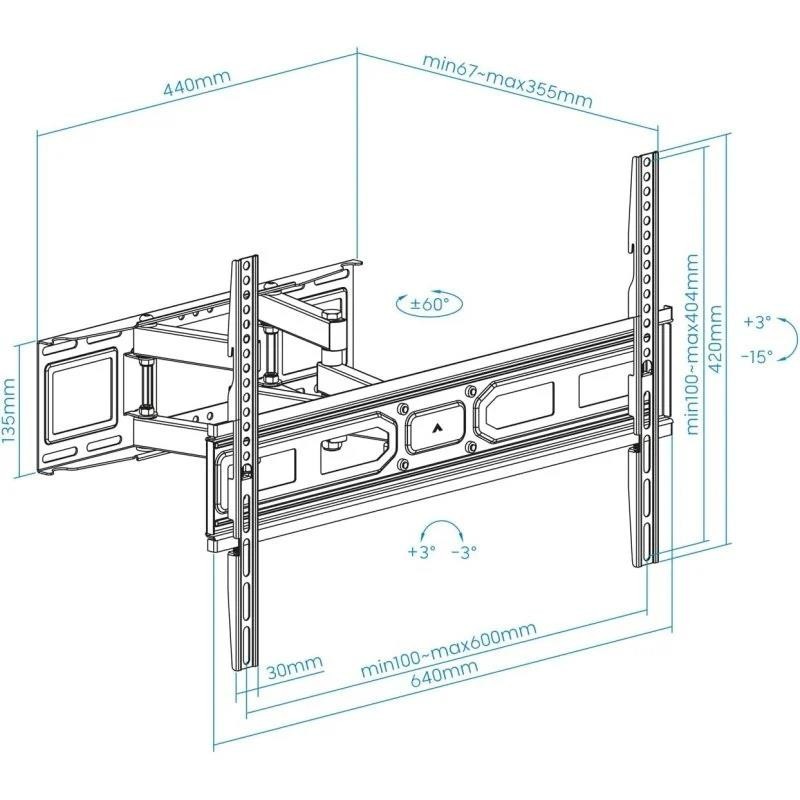 - Compatible con VESA: 100x100, 150x100, 100x150, 100x200, 200x100, 150x150, 200x200, 300x200, 400x200, 300x300, 400x300, 600x200, 400x400, 600x300, 600x400