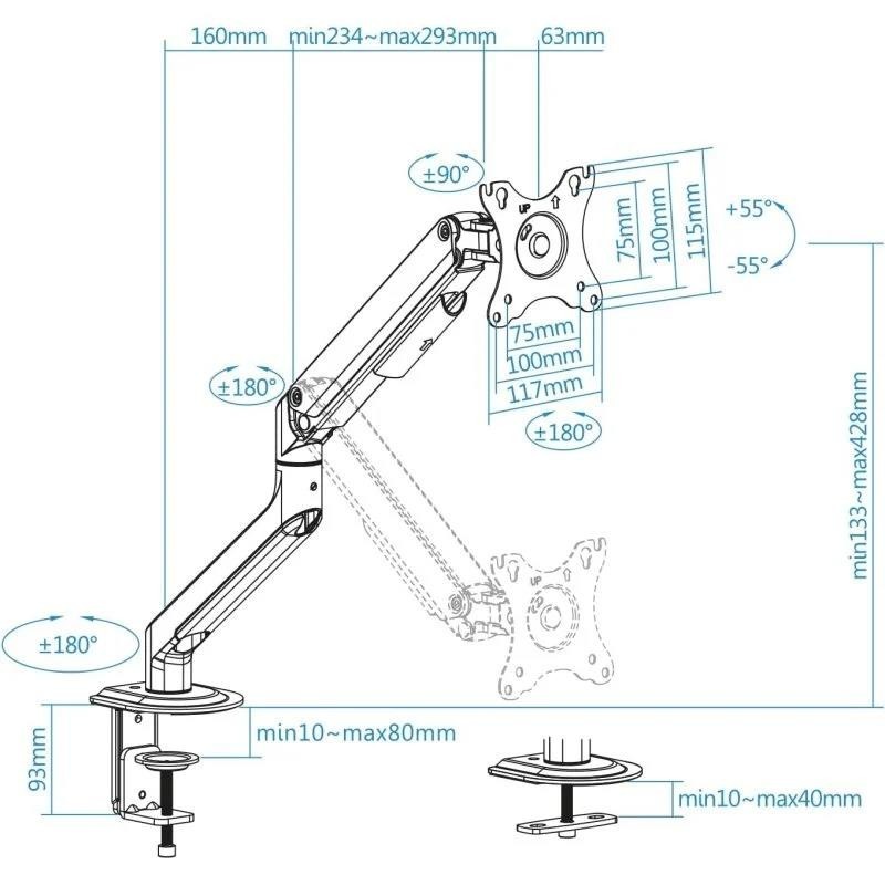 • Interfaz de panel de montaje: 75 x 75,100 x 100 mm