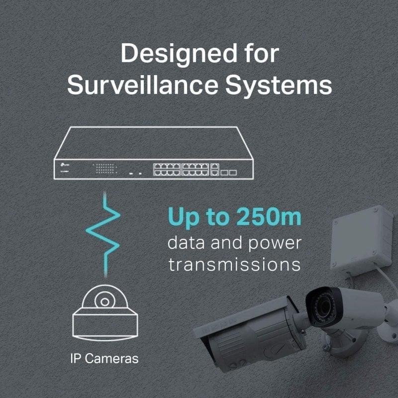 - Escenarios de aplicaciones múltiples: El TL-SL1218MP es totalmente compatible con dispositivos PoE, como cámaras IP, puntos de acceso y teléfonos IP. También funciona con dispositivos cableados que no son PoE para proporcionar conexiones gigabit, como PC, impresoras e IPTV.