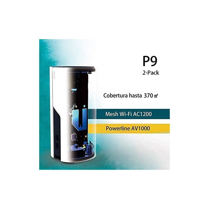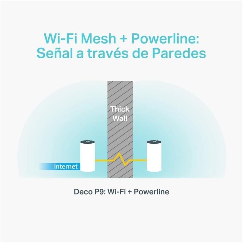 El Deco P9 es un router WiFi Mesh que también soporta la red PLC. Las conexiones Powerline y WiFi funcionan juntas para conectar cajas Deco , ofreciendo velocidades aún más rápidas y una cobertura verdaderamente perfecta.
