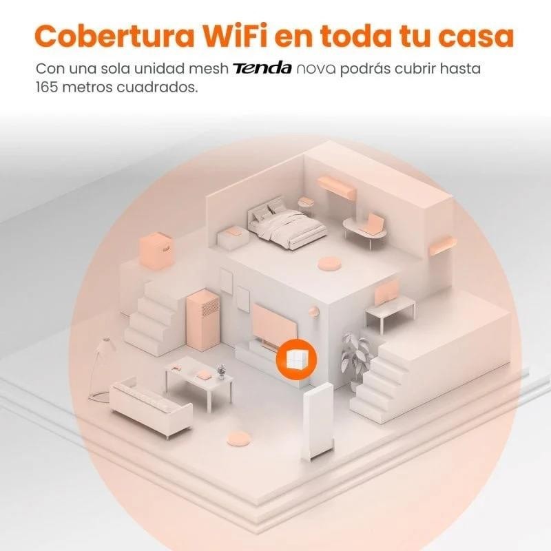 Cobertura de 500?, Conexión WiFi en Todas Partes. Sin importar la estructura, el conjunto de tres unidades cubre hasta 500 metros cuadrados con fuerte señal Wi-Fi. No existirán zonas sin señal, disfruta de una experiencia WiFi rápida y consistente donde quiera que vayas