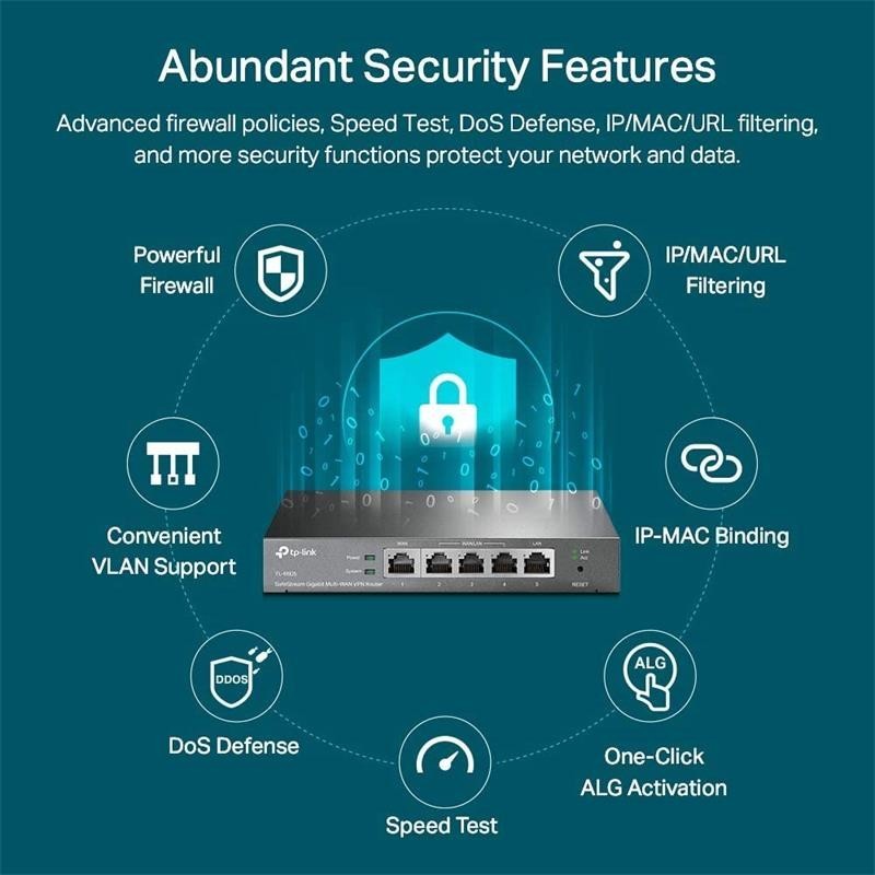 - Abundantes funciones de seguridad : las políticas de firewall avanzadas, la defensa DoS, el filtrado de IP / MAC / URL y más funciones de seguridad protegen su red y sus datos.