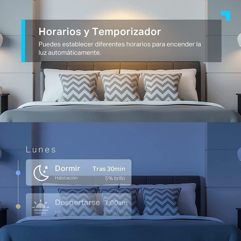 • PROGRAMACIÓN Y TEMPORIZADOR - Establezca un horario fijo para administrar sus dispositivos inteligentes automáticamente y cree listas de temporizadores de cuenta regresiva para un control de tiempo más preciso