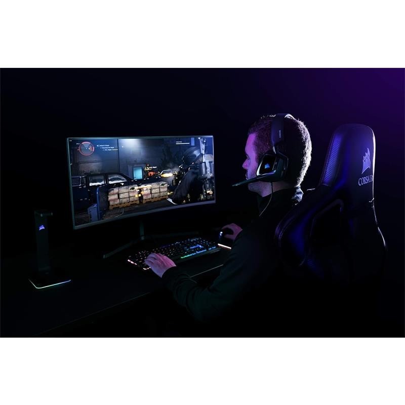 - Control inteligente, posibilidades ilimitadas. El software CORSAIR iCUE permite personalizar los ajustes del ecualizador de sonido, disfrutar de un sonido envolvente e inmersivo 7.1, controlar el ruido local y sincronizar la iluminación RGB con periféricos, refrigeradores, ventiladores y otros productos de CORSAIR compatibles.