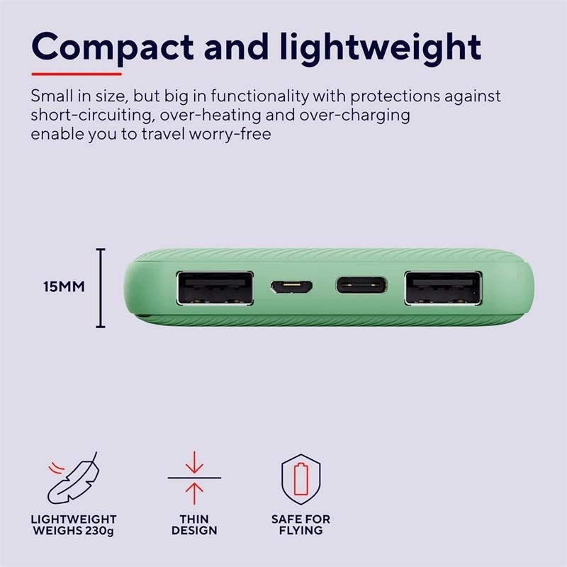 Pequeña en tamaño, pero grande en funcionalidad, la batería externa Primo ofrece una capacidad de 10 000 mAh en un diseño compacto que cabe fácilmente en cualquier bolsa. Con este compañero de viaje la conexión está garantizada siempre que se esté dando una vuelta; carga totalmente el teléfono hasta 4 veces y garantiza hasta 46 horas adicionales de batería de teléfono o 12 horas adicionales en el caso de la tableta.*
