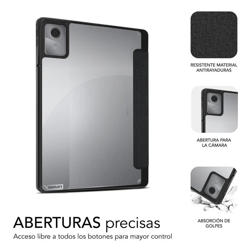 La funda SUBBLIM para Lenovo Tab M11 destaca por su diseño Full SmartCover y su estructura monobloque de termoplástico, facilitando la disipación de impactos y proporcionando una barrera eficaz ante caídas accidentales. Su sección trasera transparente permite exhibir la estética original de la tablet sin renunciar a la seguridad, mientras que los bordes reforzados con tecnología Shock Absortion absorben y dispersan la energía de los golpes.