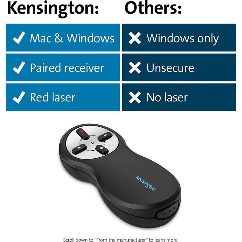 Los profesionales cuentan con Kensington para el control de sus presentaciones. Con una conexión inalámbrica altamente confiable y controles intuitivos, este control remoto le permite concentrarse en lo que más importa: hacer una presentación efectiva.