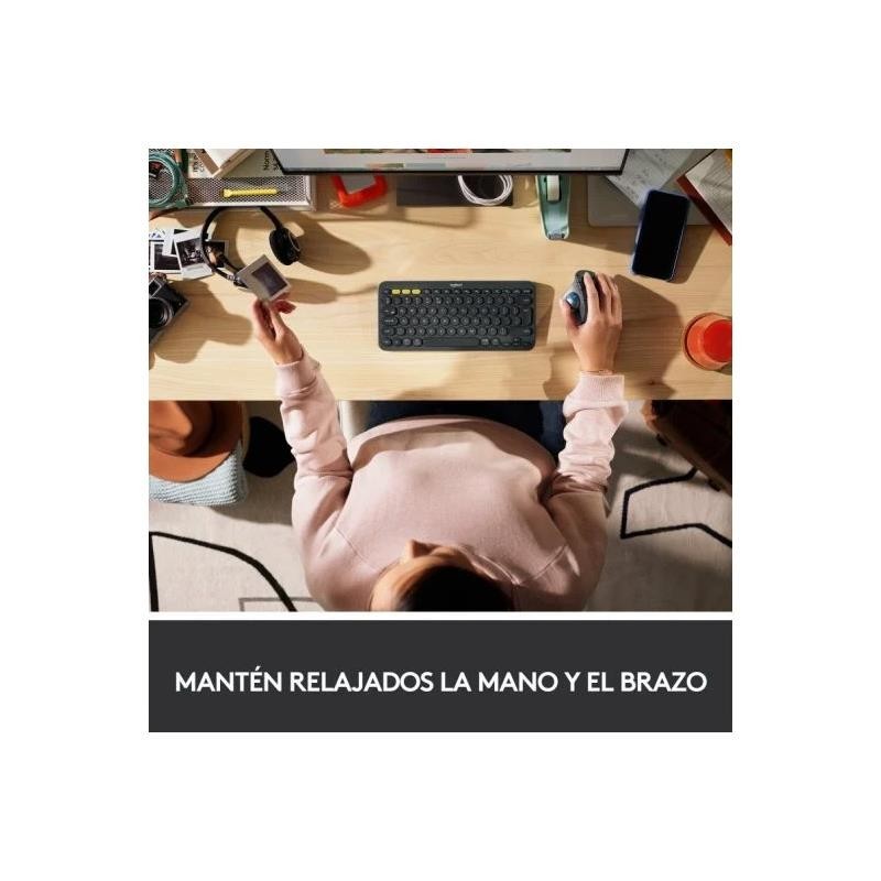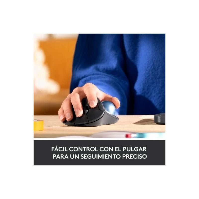 - Suave control del pulgar: Rastrea con precisión y control el cursor en cualquier superficie y con un sencillo trackball manejado con el pulgar. Ajusta su velocidad con el software Logitech.