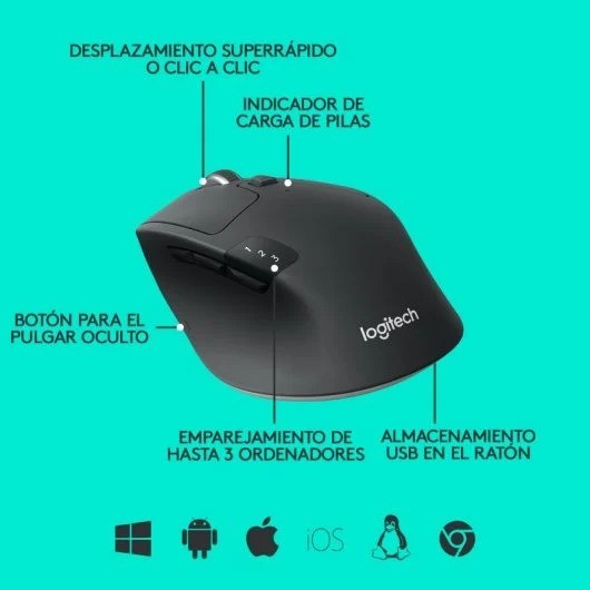 • Durable y Versátil: resistente, con una duración de batería de 24 meses(1), el M720 es compatible con ordenadores, portátiles y tablets, con Windows, macOS, Chrome OS, Linux, e iPadOS.