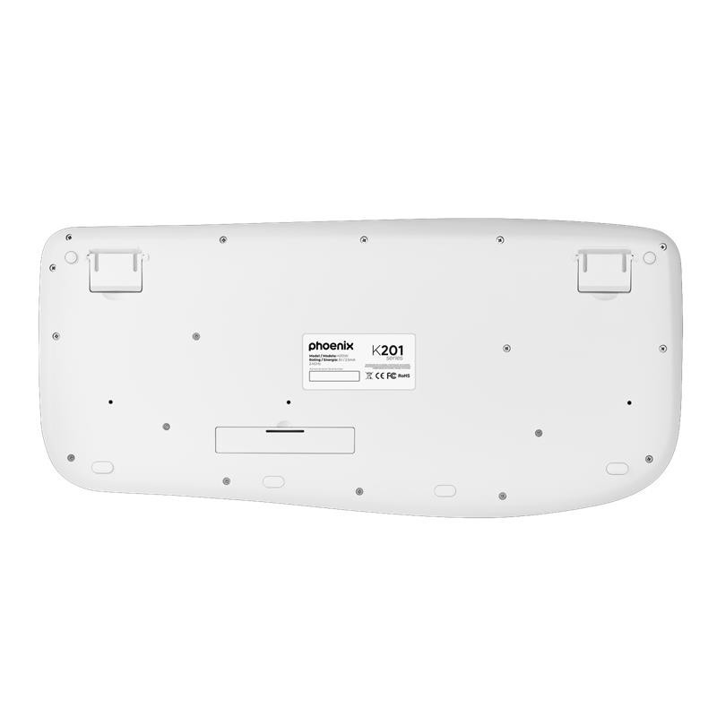 El teclado K201 de Phoenix Technologies ha sido especialmente diseñado pensando en aquellas personas que escriben en el ordenador durante horas y horas. Su diseño ergonómico permite adoptar una posición cómoda a la vez que reduce la tensión de las muñecas mientras lo usas.